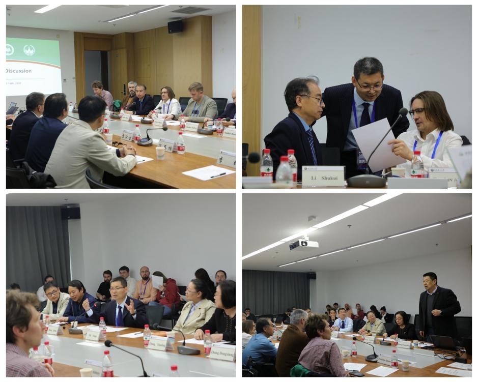 参加座谈会的来访专家学者主要有:莫大Vasiliev Roman教授,Petukhov Dmitry副教授,Petrov Vladimir副教授;深北莫科研部部长Shtarev Dmitry,材料系主任Garshev Alexey,材料系中方主任李树奎,生物系主任Kitashov Andrey,化学系主任Sobolev Alexey,材料系副系主任Vasiliev Alexander,常帅教授,史祥燕教授等。我院张加涛院长、黎汉生副院长、支俊格副院长、张小玲教授、张东翔副教授、冯英楠助理教授参加了座谈。