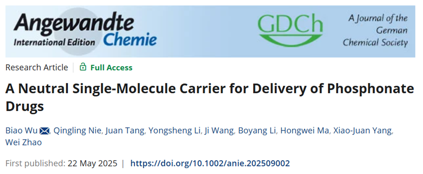 近日,小说网 吴彪教授、唐娟特别研究员和赵伟特别研究员在国际知名化学期刊《Angewandte Chemie International Edition》上发表题目为“A Neutral Single-Molecule Carrier for Delivery of Phosphonate Drugs”的研究论文。该论文的第一作者为小说网 博士研究生聂清玲。此项研究得到了国家自然科学基金,北京市自然科学基金和小说网 青年教师学术启动计划等项目的资助及小说网 分析测试中心的支持。