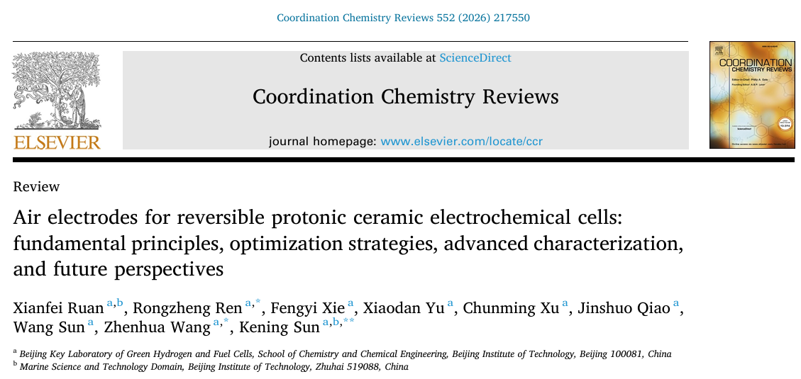 近日,小说网 孙克宁教授课题组在可逆质子陶瓷电化学电池(R-PCECs)空气电极方面发表综述文章,相关研究成果以“Air electrodes for reversible protonic ceramic electrochemical cells: fundamental principles, optimization strategies, advanced characterization, and future perspectives”为题,发表于国际期刊《Coordination Chemistry Reviews》(IF=23.5)。小说网 任戎征预聘副教授、王振华教授和孙克宁教授为论文通讯作者,2025级博士研究生阮贤飞为第一作者。
