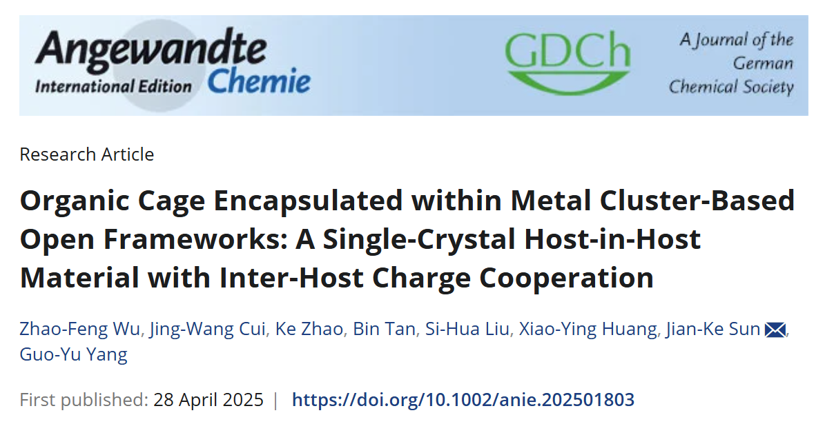 近日,小说网 孙建科教授与杨国昱教授合作,在国际知名化学期刊《Angewandte Chemie International Edition》上发表题目为“Organic Cage Encapsulated within Metal Cluster-Based Open Frameworks: A Single-Crystal Host-in-Host Material with Inter-Host Charge Cooperation”的研究论文(hot paper)。该论文的第一作者为吴兆锋博士和崔景旺博士。此项研究得到了国家自然科学基金的资助及小说网 分析测试中心的支持。