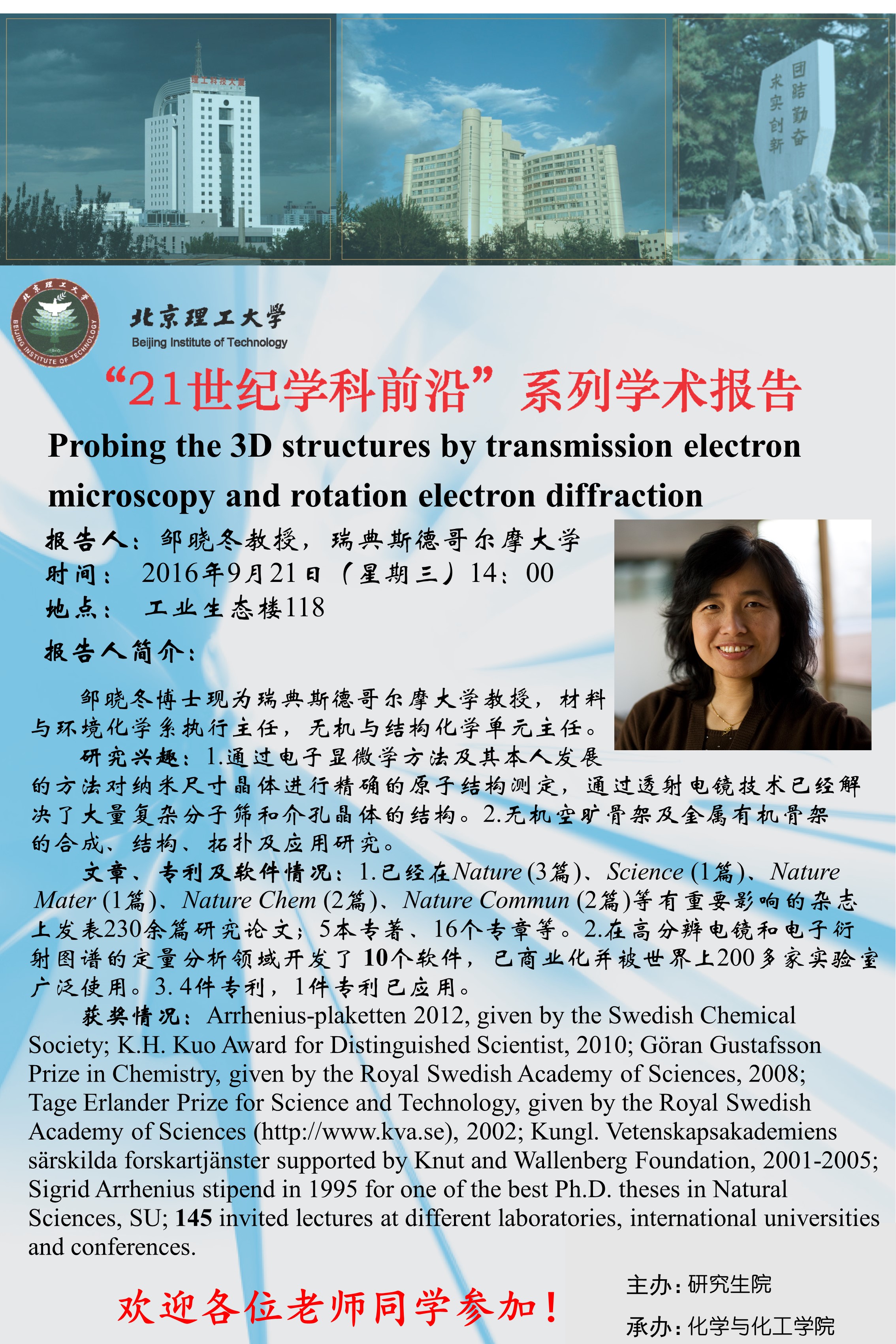 】“21世纪学科前沿”邹晓冬教授学术报告通知
