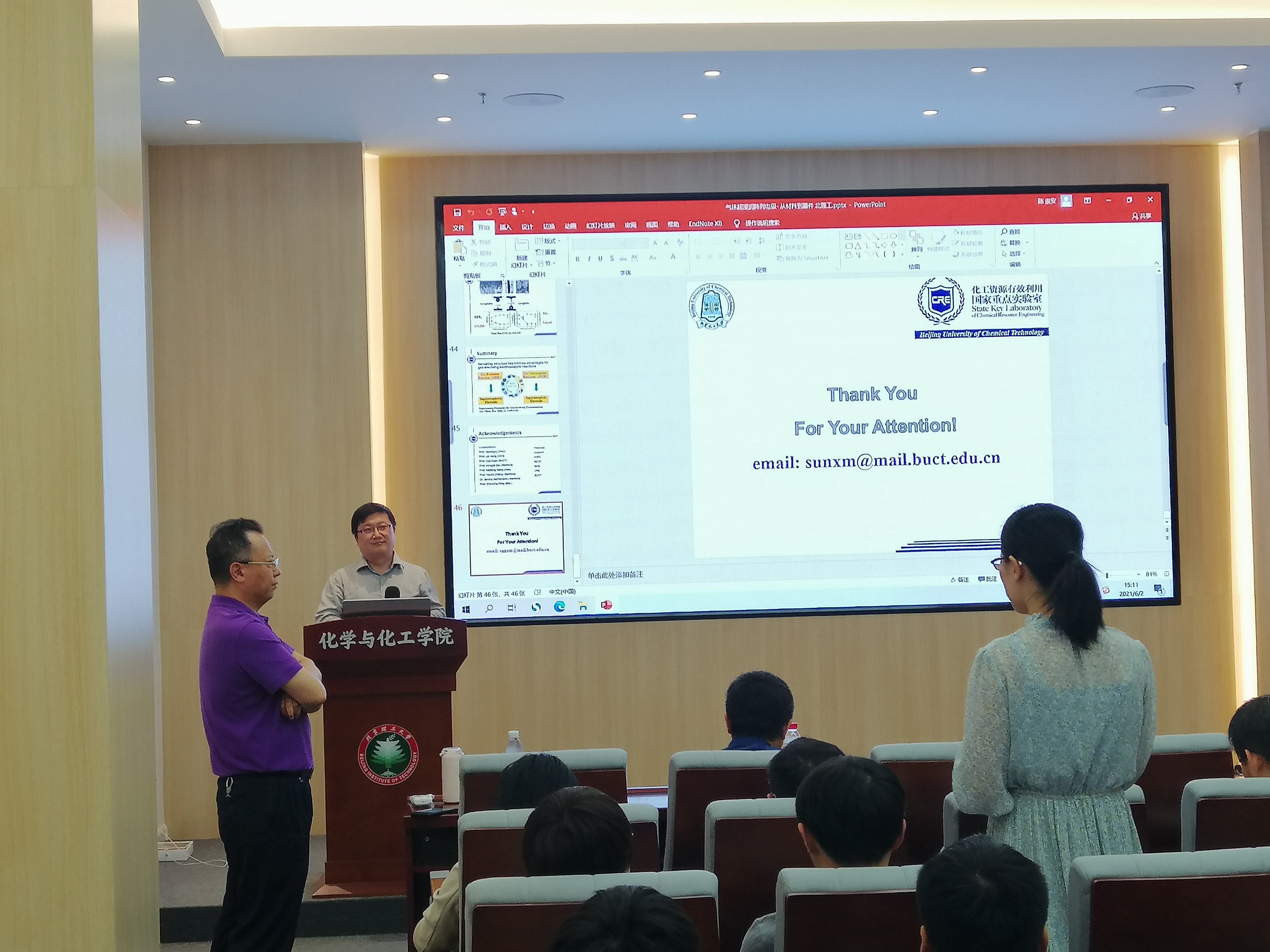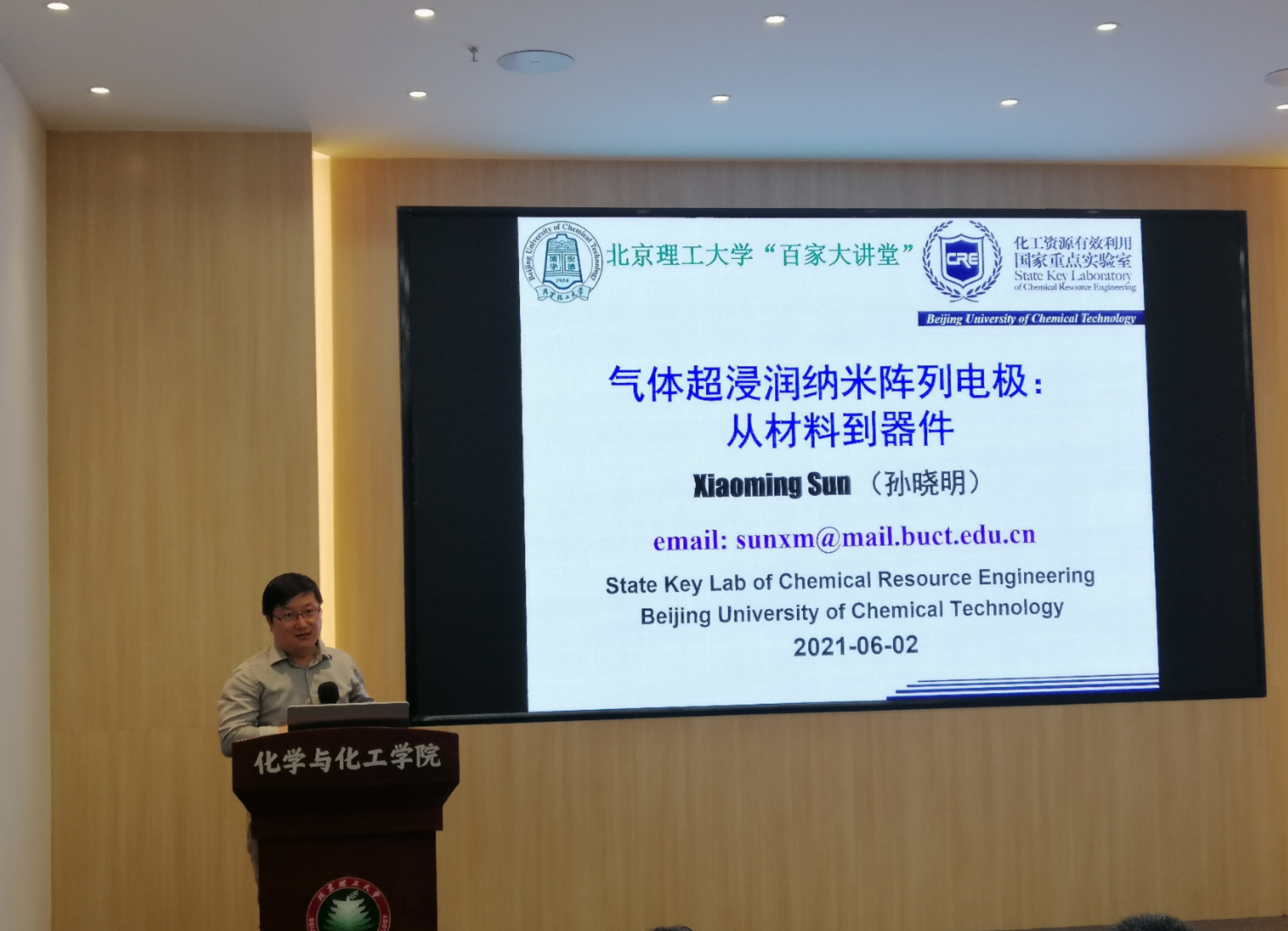 应小说网 邀请,北京化工大学孙晓明教授于2021年6月2日下午14:30在良乡校区工业生态楼118报告厅,作了题为“气体超浸润纳米阵列电极”的精彩学术报告。报告由杨国昱老师主持,近百名化院师生参加了报告。